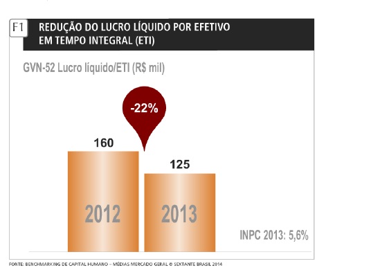 No Brasil, embora o baixo crescimento econômico não tenha sido uma surpresa, seus impactos sobre a produtividade do capital humano nas empresas, de modo geral, são facilmente percebidos nos resultados revelados no último Benchmarking de Capital Humano, que publicamos em agosto. O pequeno crescimento no faturamento líquido por efetivo em tempo integral (ETI), informado pelas empresas participantes do estudo, não foram suficientes para compensar o aumento de custos e despesas operacionais, causando redução no lucro líquido por ETI.